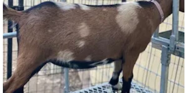 Born May 27, 2020, Maysi is a registered ADGA Nigerian Dwarf. Her Chamoisee color with Moon Spots make her stand her out from the rest of the herd.